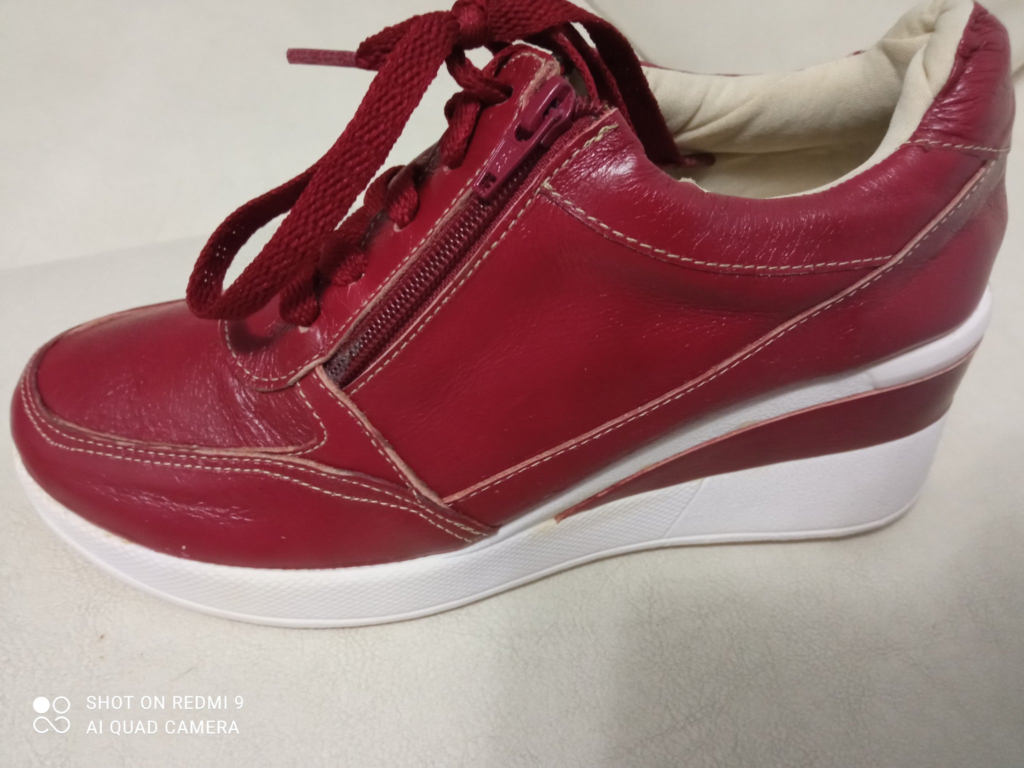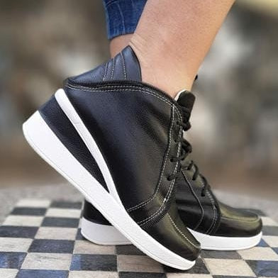 Sapatênis botinha feminino em couro legítimo modelo flatform soldado injetado em PU com soldado de 3 cm frontal e 6cm traseiro,.parte superior com cadarço para amarração . Todo forrado internamente em espuma que permite maior conforto . Costura prespontada externa