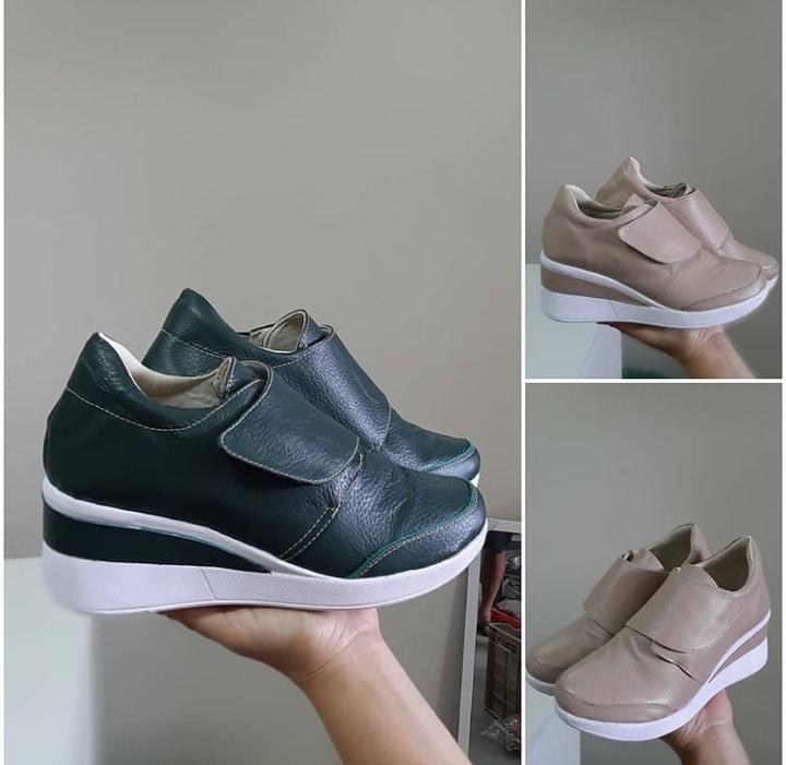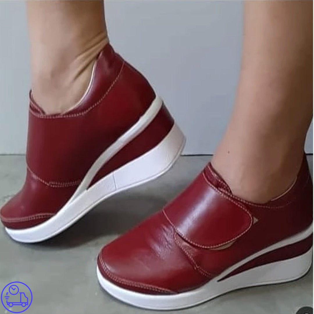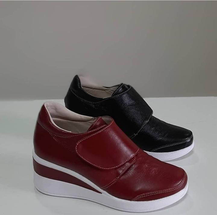 Sapatênis feminino em couro sintético com fecho frontal em velcro, solado vulcanizado , modelo flatform que dá mais segurança ao pisar , super confortável e leve. Acabamento de excelente qualidade e emborrachado internamente. Cano curto . Solado frontal de 3cm cm e traseiro de 6cm