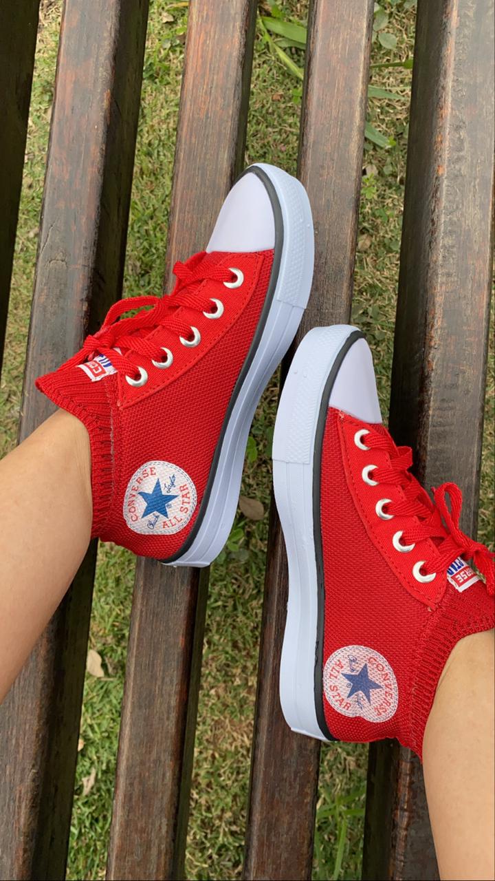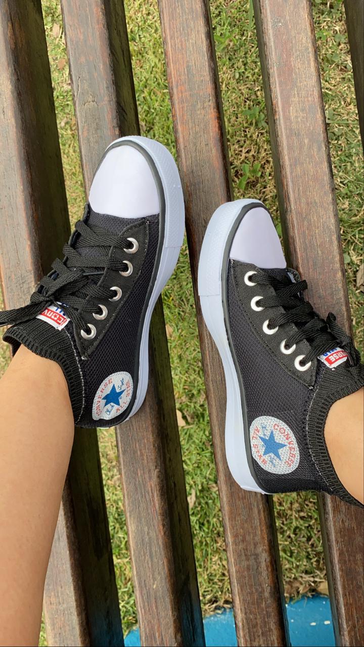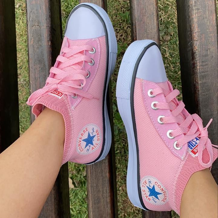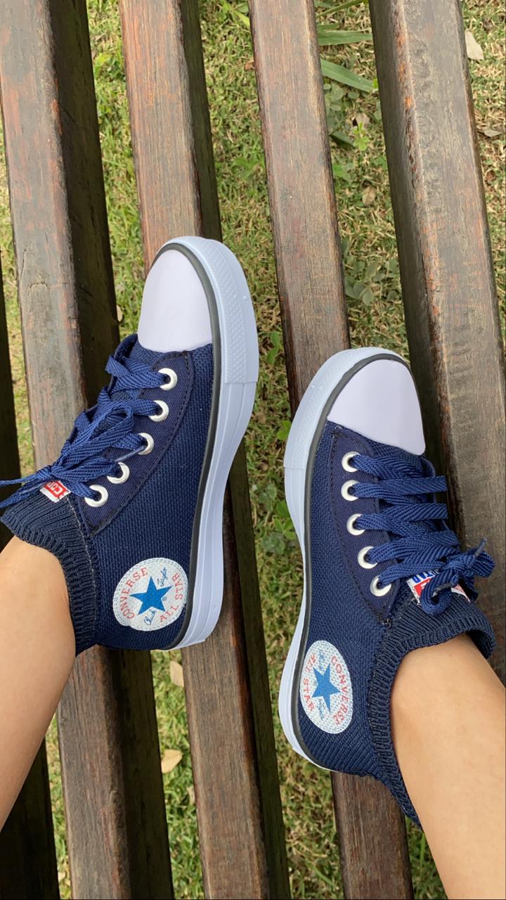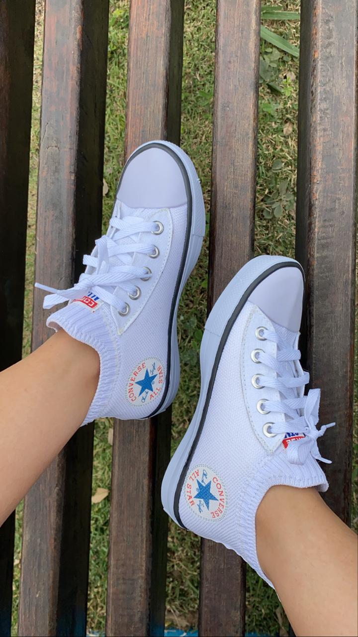 Tênis cano alto modelo meia em espuma macia , confortável e leve , solado de 3 cm com cadarço decorativo para amarração superior .