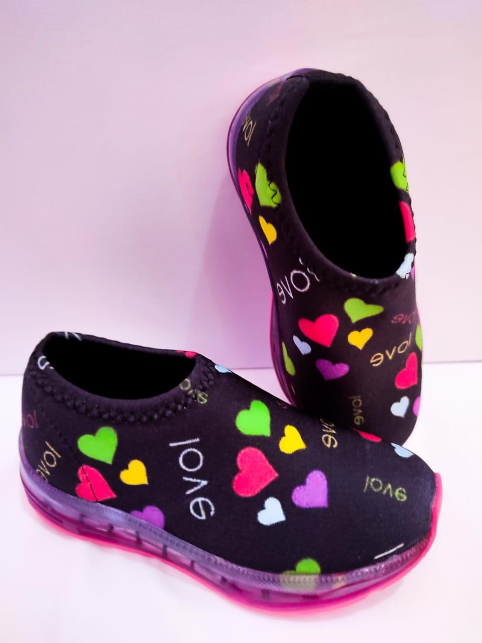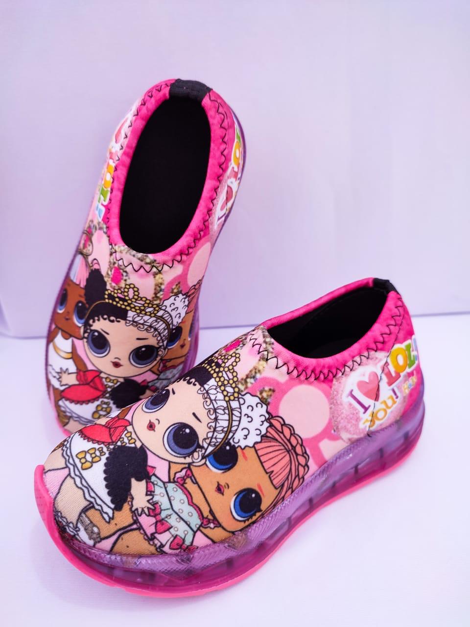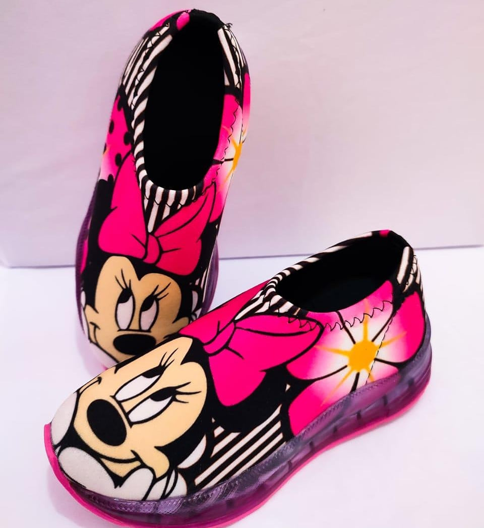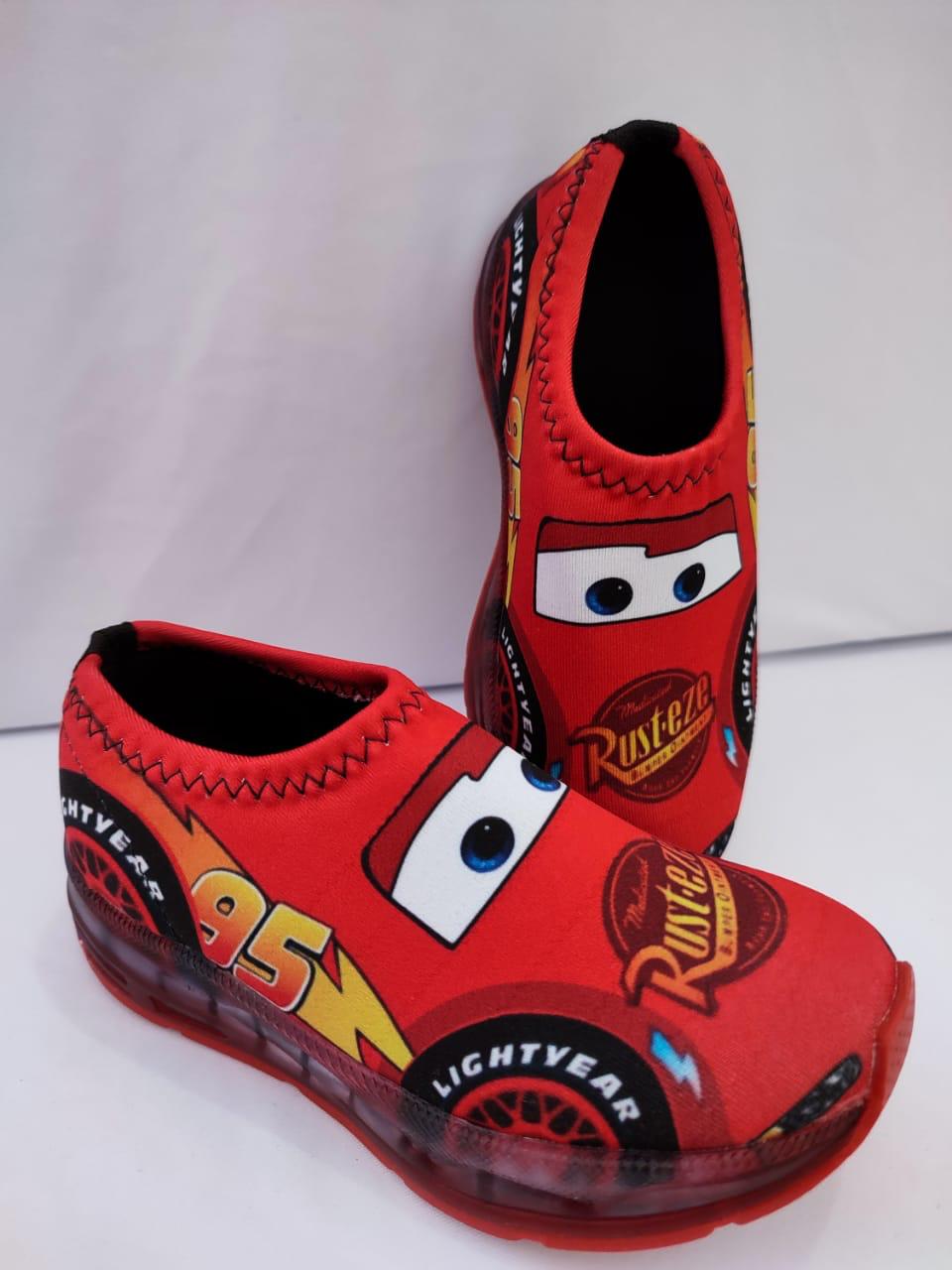 Tênis modelo meia confortável com personagens e estampas coloridas e vivas, solado vulcanizado macio e leve acompanha luz de led na sola  que acende ao pisar.