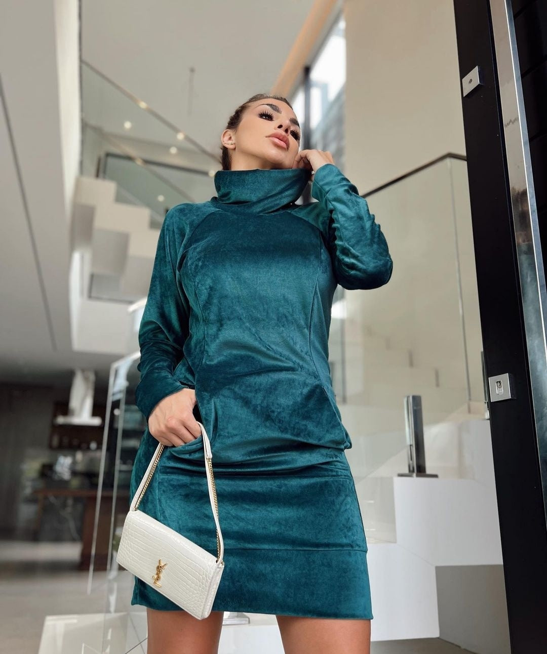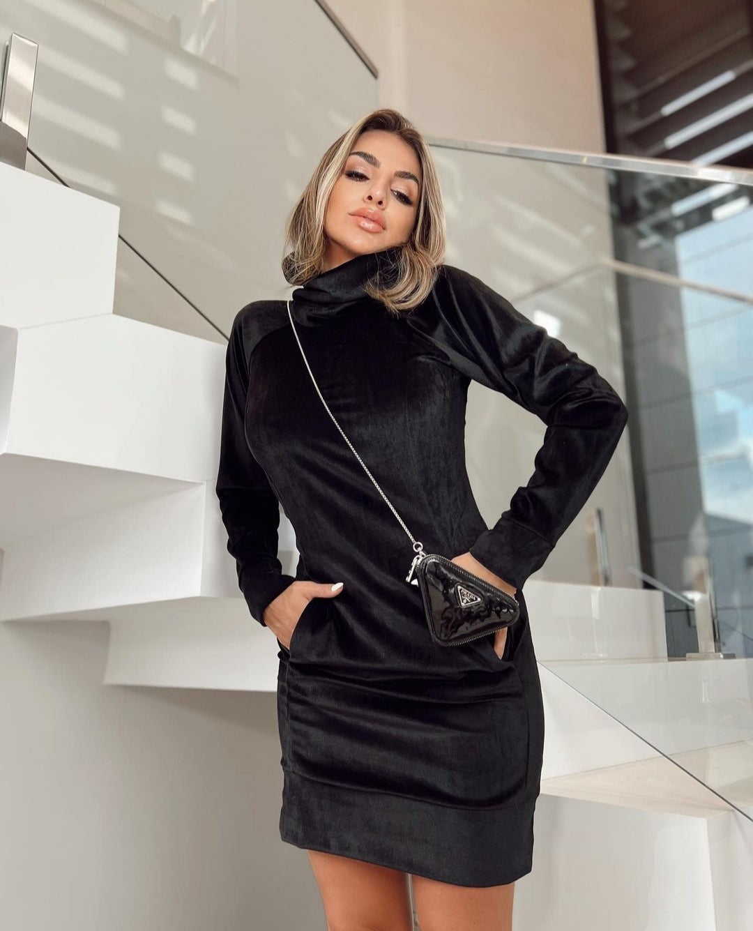 Vestido em plush manga longa , modelo tubinho , gola alta , tecido com elastano estica bem ,macio de leve brilho , disponível do P ao G ( veste do 36 ao 44).