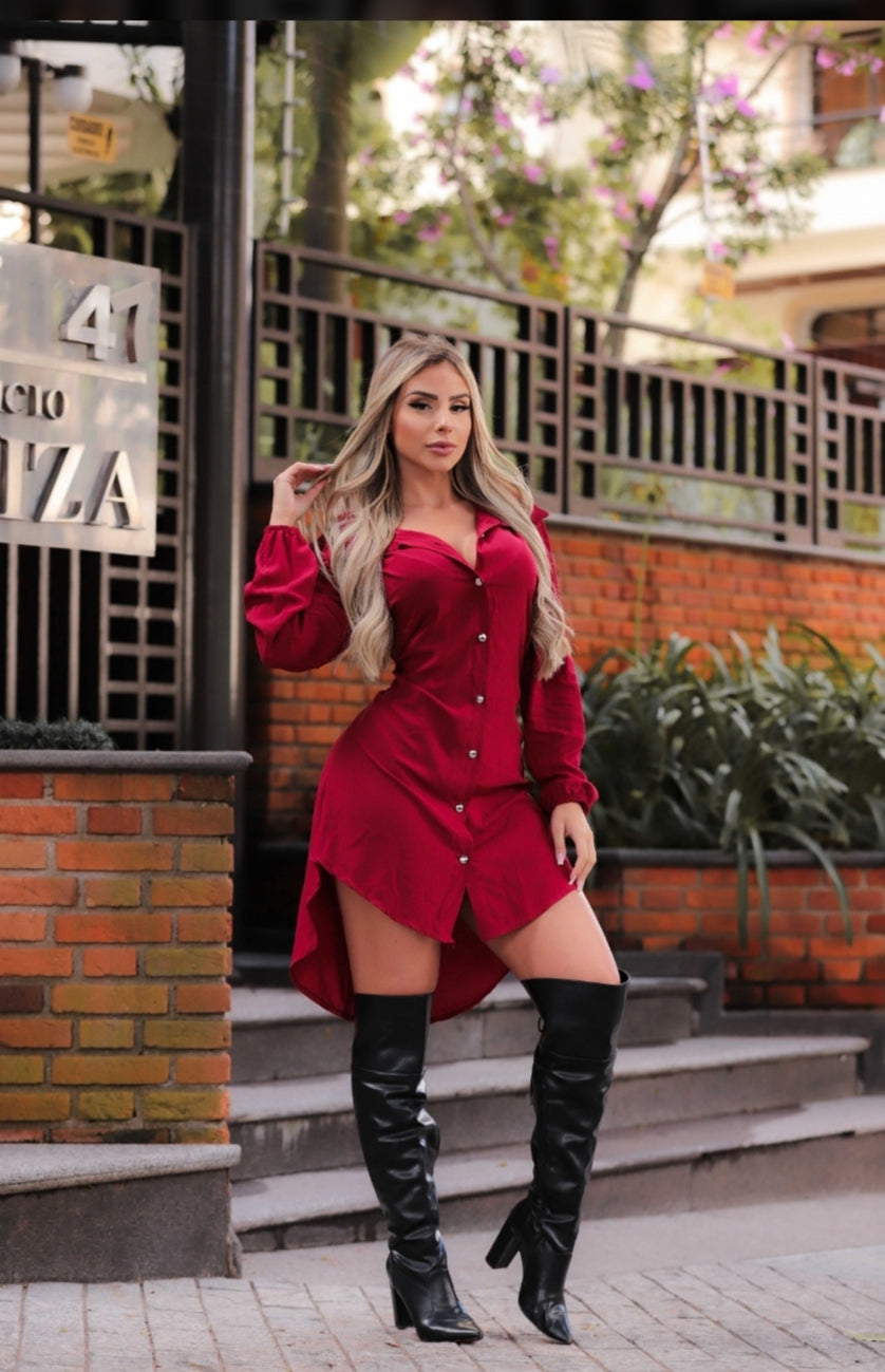Vestido modelo mullet em viscose não estica , tecido leve com botões frontais , manga longa . Disponível do 36 ao 42 , em várias cores