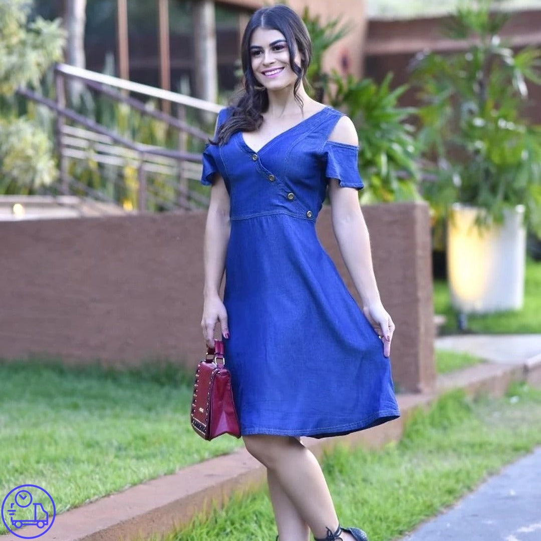 Vestido em jeans liocel bem leve e confortável sem elastano com detalhe nas mangas e botões decorativos frontais, veste perfeitamente.