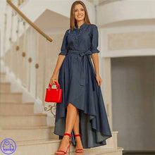 Vestido longo mullet em jeans sem elastano,  jeans leve tencel. manga 3/4 , detalhe no colo e faixa de amarração na cintura.  Simplesmente maravilhoso.
