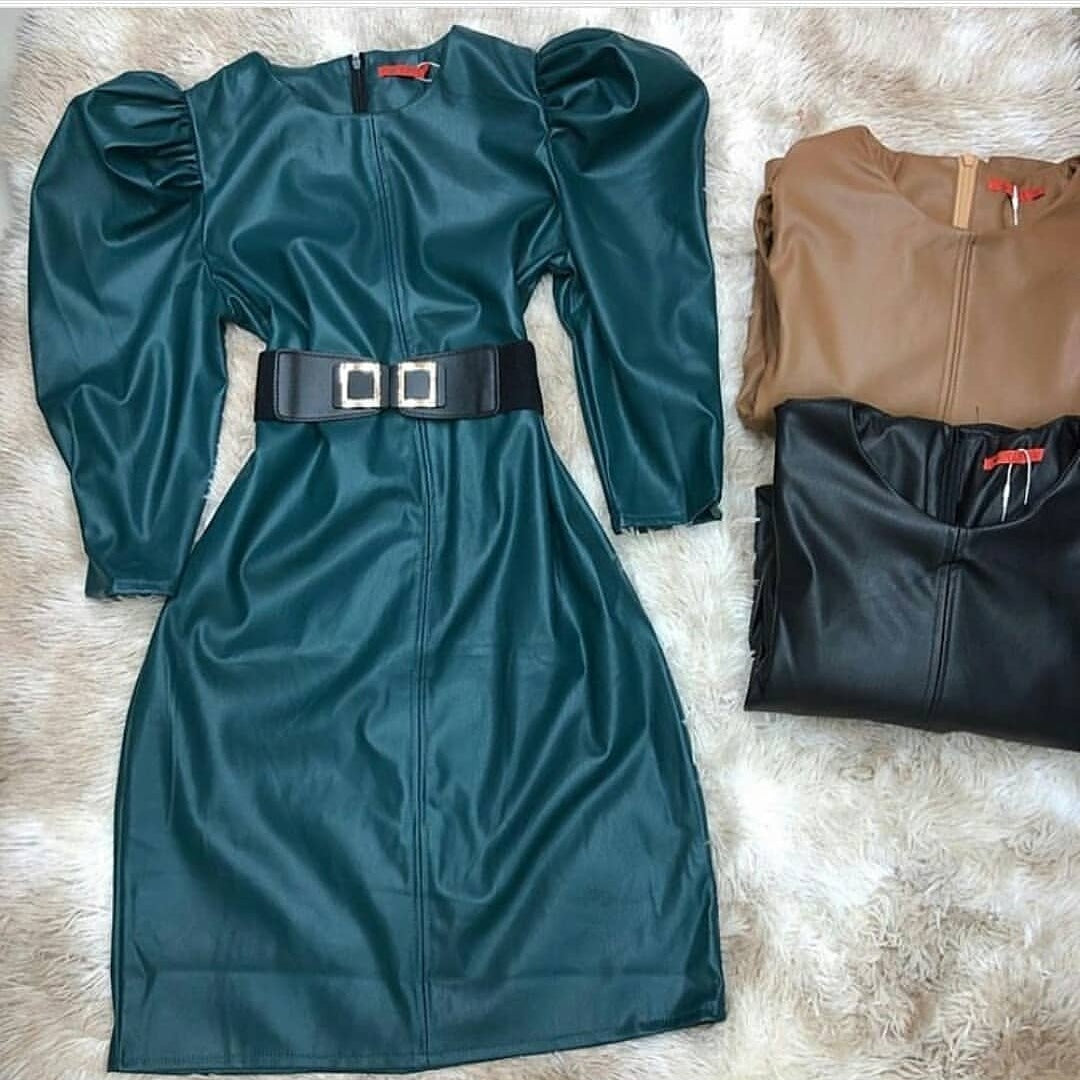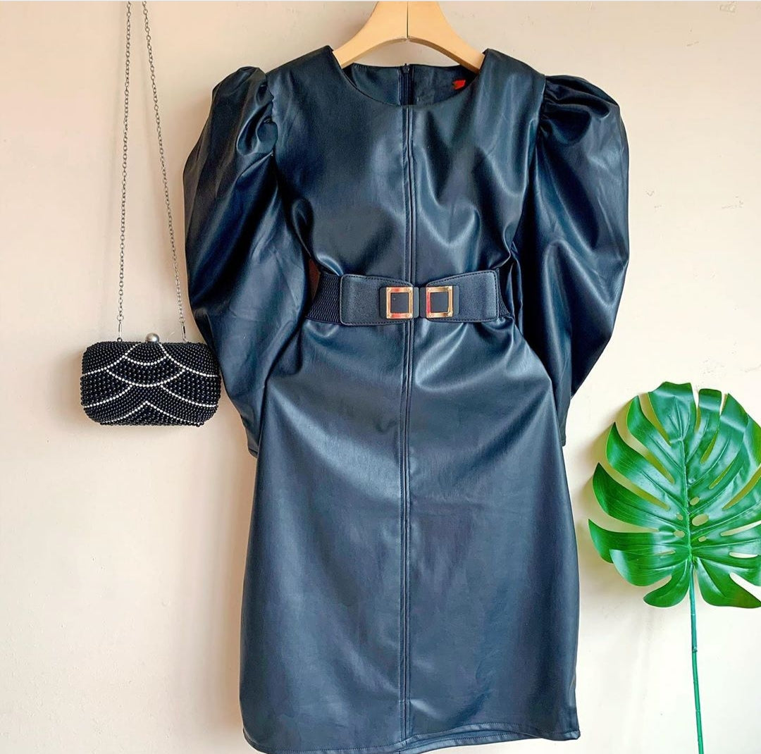 Diferente e moderno vestido em couro sintético super lindo, veste muito bem.