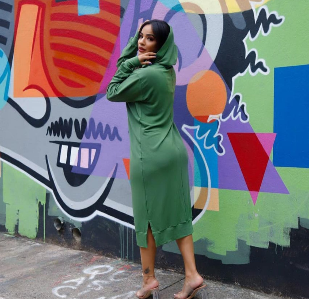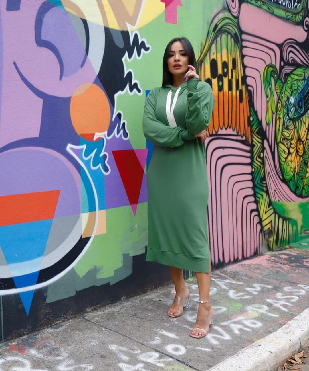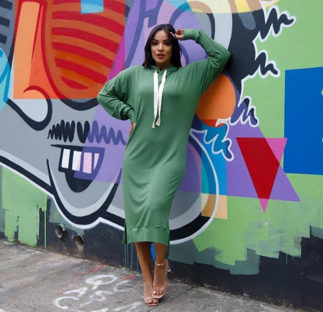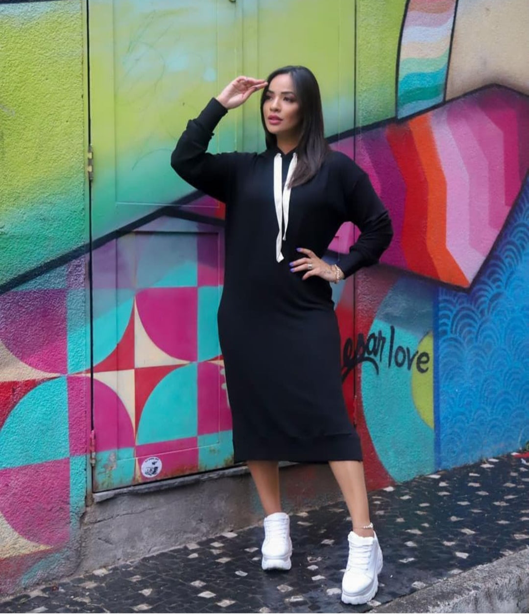 Vestido modelo camisão em moletinho com capuz e manga longa , confortavel e moderno além de bem despojado. Tamanho único veste do 40 ao 48